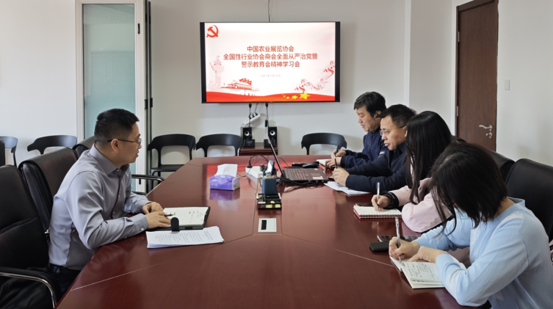 3月19日上午,中国农业展览协会召开会议,传达中央社会工作部全国性行业协会商会全面从严治党暨警示教育会精神。